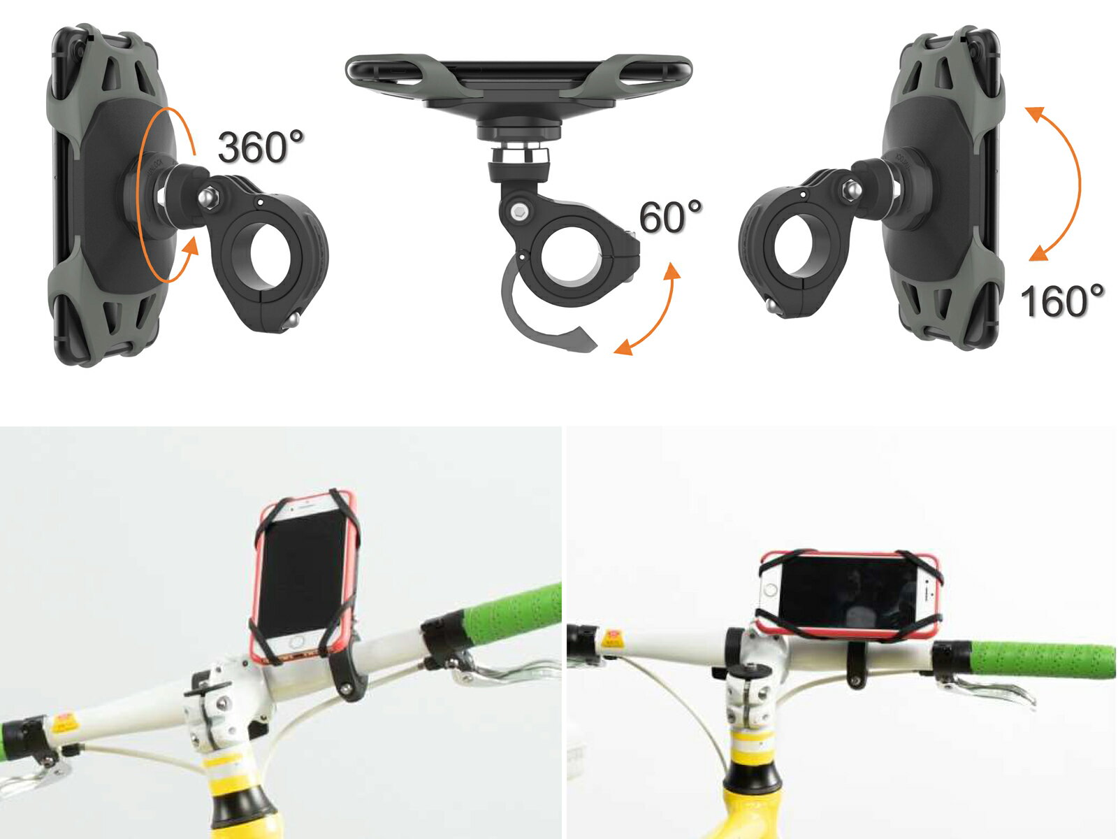 【送料無料】スマホホルダー 自転車ホルダー バイク GPSナビ用 フィットネスバイク・ウォーカー・自転車用 ZenCT 脱落防止 多機種対応 360度回転 脱着簡単 ブラック CT074