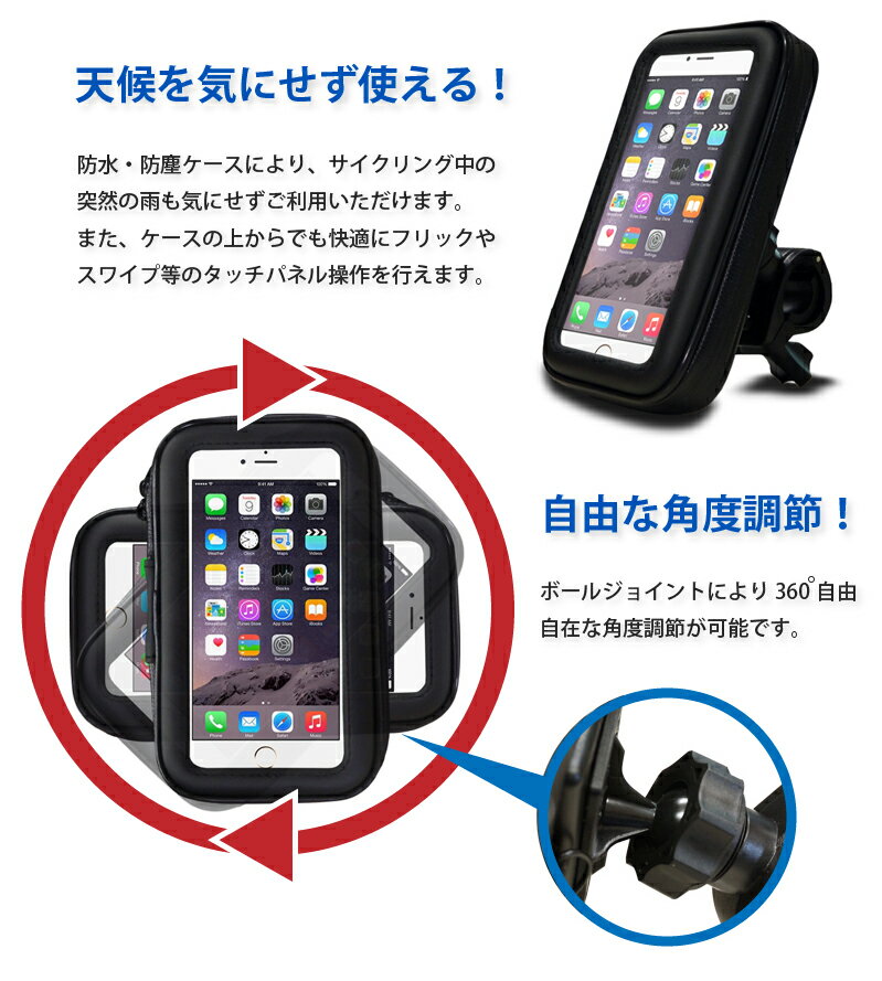 自転車ホルダー/iPhone6sPlus & iPhone6Plusにも対応! 自転車用 スマートフォンホルダー 〜5.5インチ用 防水 防塵 ケース自転車 スマートフォン バイク サイクリング スマホホルダー ホルダー スタンド宅配便送料無料